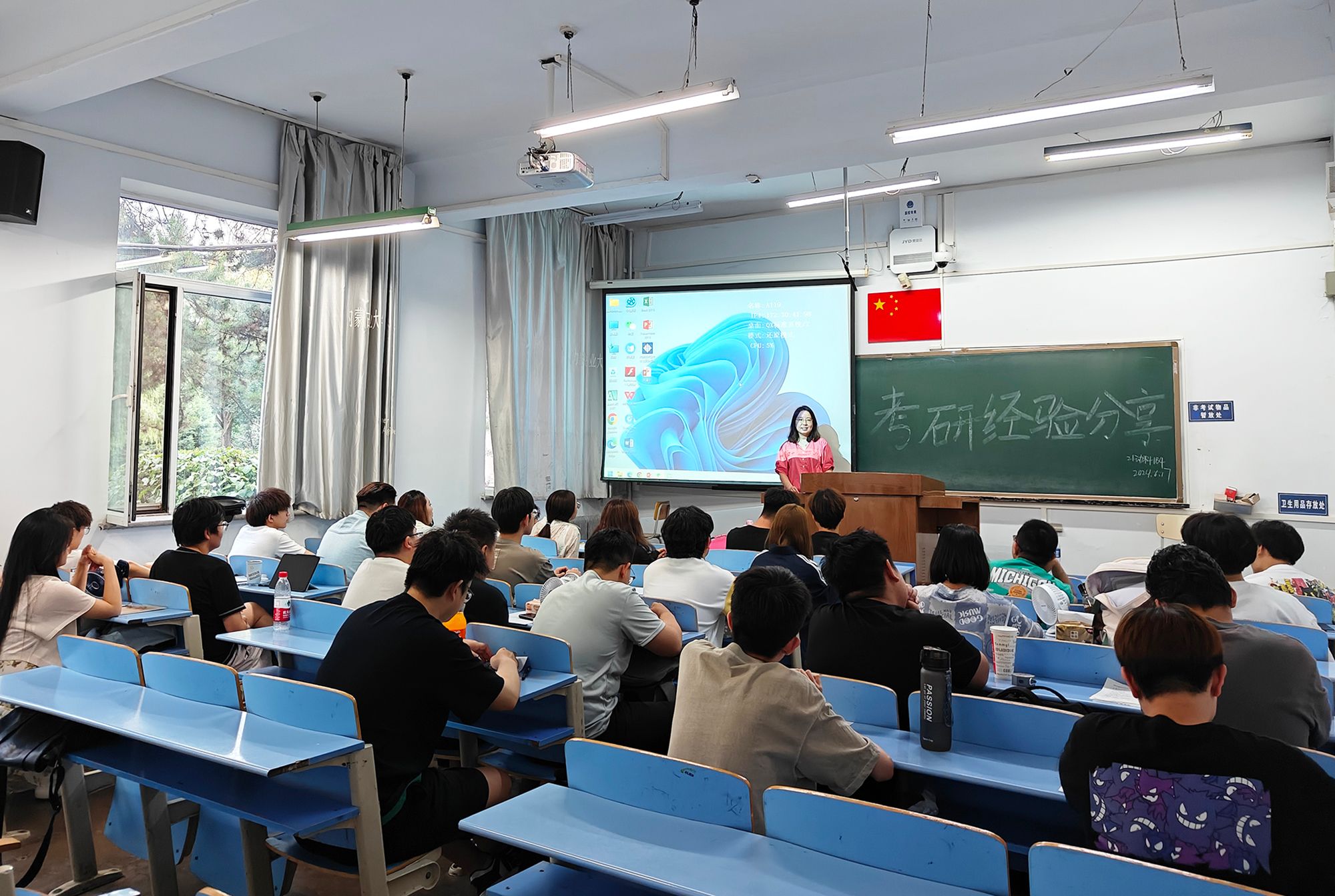 会议伊始,吕琦对孙铨礽、崔延辉两位同学进行介绍,希望同学们认真聆听其考研经验与方法。随后,孙铨礽从不同角度阐述自身考研策略,深入剖析不同学科的特点和学习方法,分享其在提高学习效率、整合知识体系方面的独特技巧,同时他鼓励同学们制定明确的时间表,以便能科学规划学习进程,合理统筹各项任务,为考研成功提供有力保障。期间,崔延辉重点向同学们分享英语的学习方法,他表明词汇积累是英语学习的基石,要持之以恒地扩充词汇量,同时他说明阅读训练的重要性,建议同学们广泛阅读各类英语材料,培养语感和理解能力。会议中,孙铨礽、崔延辉对同学们提出的问题进行详细回答,进一步加深同学们对考研技巧的认识。会议最后,吕琦对本次会议进行总结,她对孙铨礽和崔延辉的精彩分享表达由衷感谢和高度赞扬,并希望同学们认真领会两位同学分享的经验和技巧,同时她鼓励同学们要保持积极向上的心态,勇于面对考研过程中的困难和挑战,坚持不懈地为自己的梦想而努力奋斗。