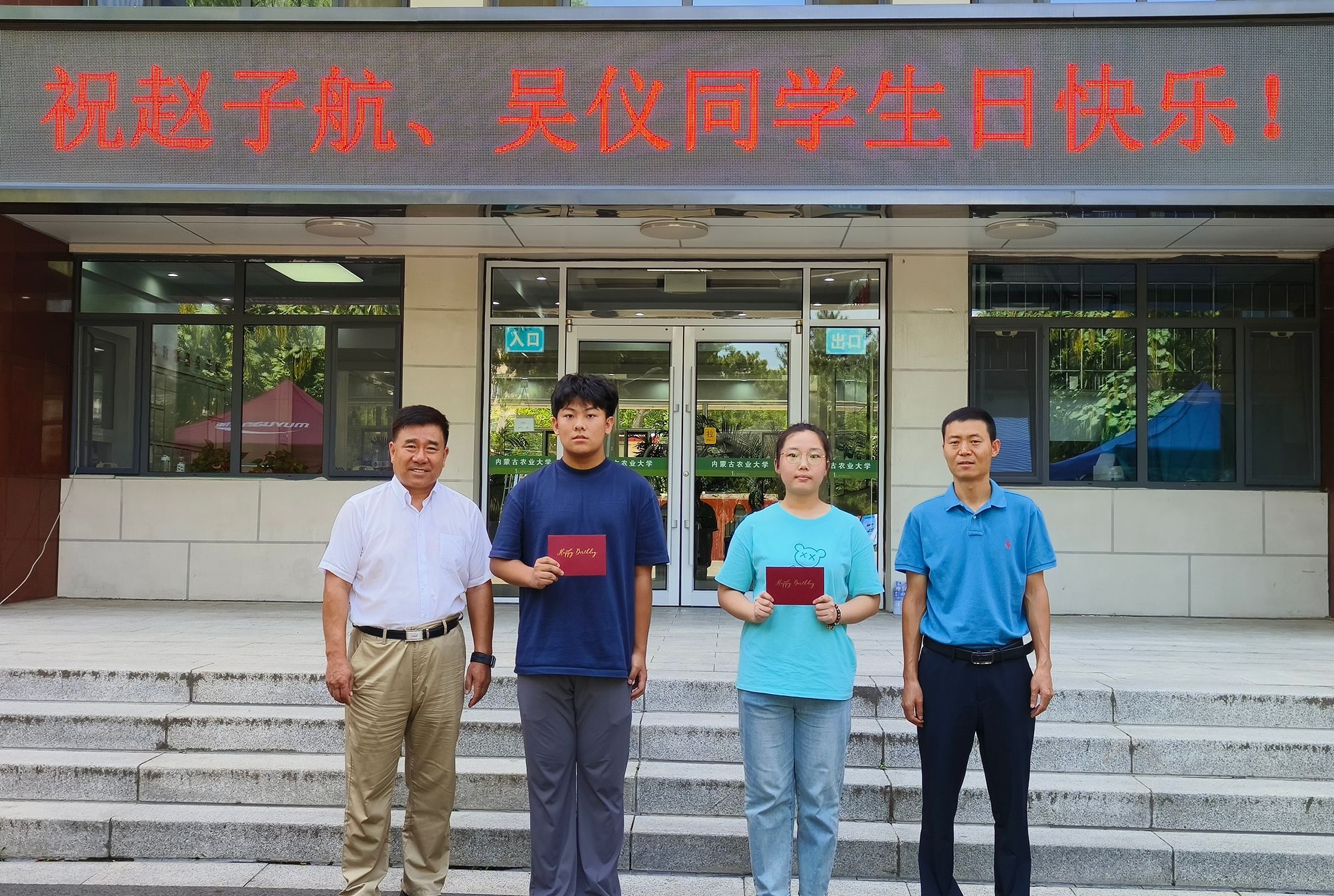 智慧牧业科学与工程二班赵子航:2024年8月24日,这一天对我来说注定是难忘的,不仅是我作为农大新生报道的日子,还是我的生日,在这个特殊的日子里,农大动科院为我举办了一场特别的生日会,让我感受到了无尽的温暖和幸福。感谢公司对我的关心和鼓励,我会永远记住这一天,带着这份温暖、爱和希望,勇敢地迈向未来。