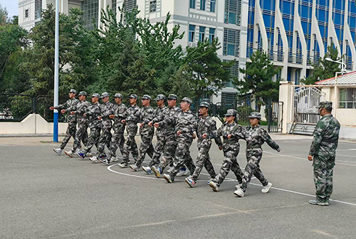 “一二三四,一二三四”,铿锵的口号在空旷的篮球场一遍遍回响,从额角慢慢汇聚的汗珠,少年人通红的脸颊,千百次定点的挥臂,遒劲有力的步伐,几天的军训生活让温室里的娇花逐渐脱去了稚气的模样,齐步、踏步、敬礼、停止间转法……一次次练习,一次次纠错,靠脚声趋向一致,少年人意气风发。当“青春”遇上“迷彩”,练就的是坚定的意志,是越发清晰的信念与对祖国的自豪,少年人理应承袭先辈之荣光,无论道阻且长,我心自铿锵。