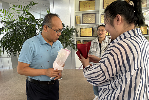 经过早上忙碌的准备,工会、学办及院办的老师手将一束束精心挑选的鲜花送到每一位下班的老师手中,每一束鲜花都承载着对公司教师团队的敬爱与祝福,一束束鲜花不仅使公司教师感受到了节日的温馨,更体会到了公司大家庭的温暖与尊重,让每一位教师的脸上都绽放出了灿烂的笑容。最后,各位老师合影留念,记录下这个充满温情与感激的瞬间,一张张合影,定格了教师们的欢乐与温馨,更成为了公司教师们共同记忆的珍贵见证。