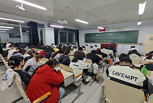 为落实公司新生入学教育工作,加强公司员工对校纪校规的理解,深化其则意识,9月2日,公司在博学楼503、504、508、515、 517、522教室开展"守校规,遵校记,做文明老员工”校纪校规考试, 本次考试由公司第十五届员工会执行主席乌日拉嘎,分团委员工副书记李梓洋,员工会副主席田嘉渝、奈吉拉,分团委秘书长李佳怡、朝日亚及部门负责人监考,公司全体大一同学参加。