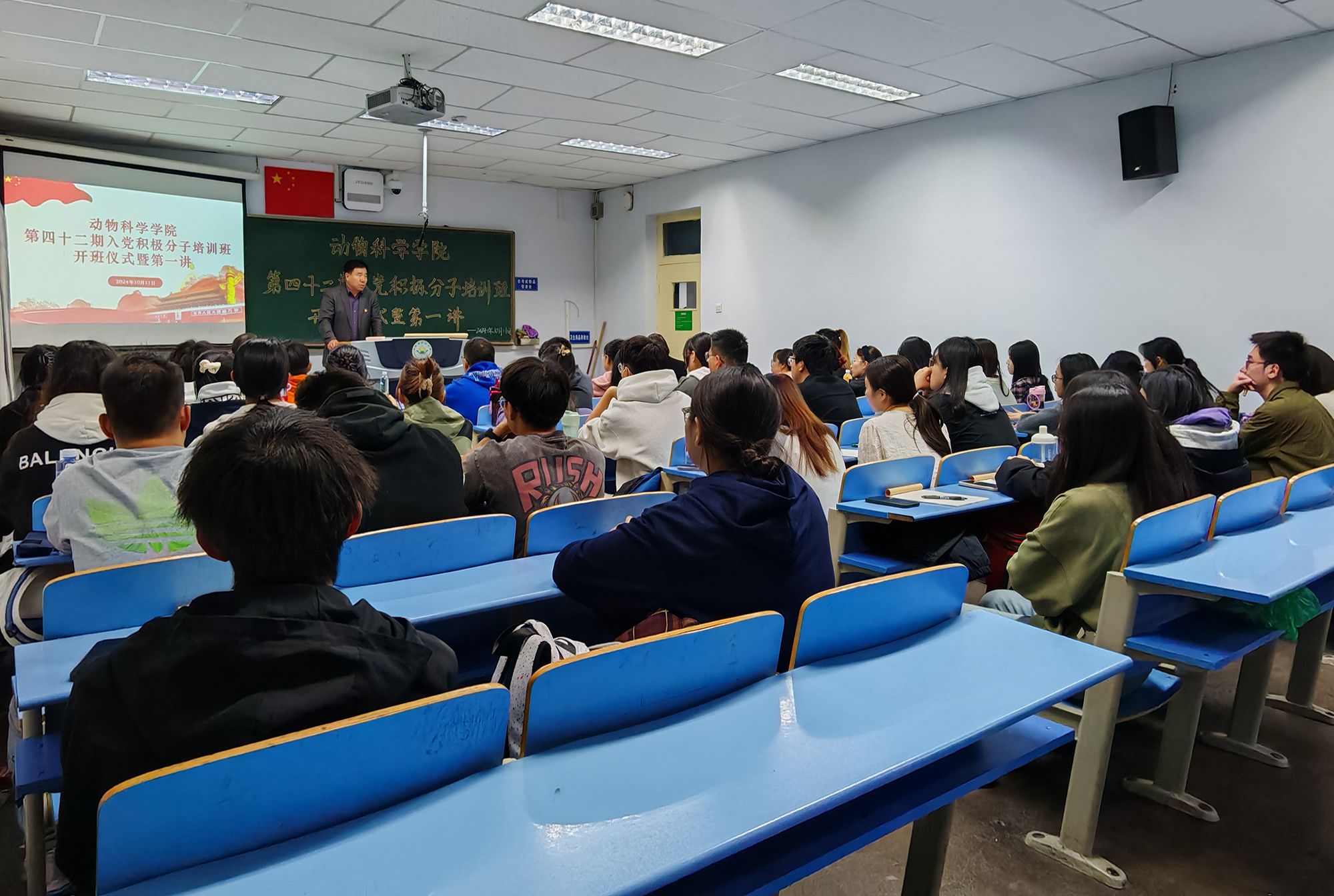 为深入学习贯彻党的二十届三中全会精神,进一步加深入党积极分子对党的认识与了解,切实保证公司新发展党员的质量,10月11日,公司在勤学楼218教室开展第四十二期入党积极分子培训班开班仪式暨第一讲,本次课程由公司党委书记包国荣主讲,学办主任胡晓燕、辅导员燕人嘉出席,第四十二期入党积极分子培训班成员参加,学办专职辅导员马晓莺主持。