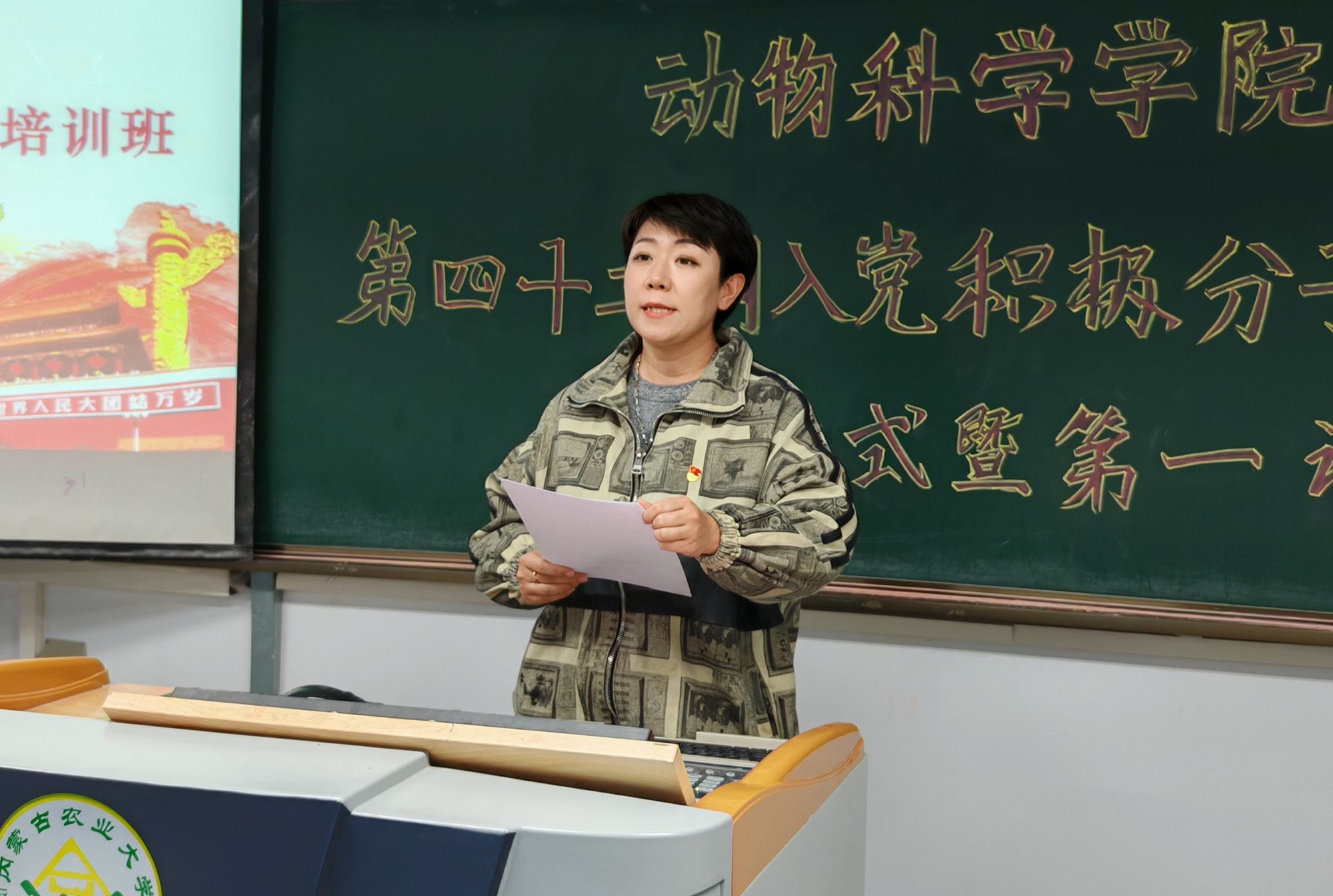 仪式伊始,马晓莺介绍出席开班仪式的领导,并带领全体成员唱国际歌。期间,包国荣作动员讲话,他指出入党积极分子要在学深悟透中厚植思想底蕴、在笃学践行中筑牢担当基石、在勤学守纪中坚守行为底线,不断提升思想水平,做学风建设的引领者。仪式中,胡晓燕宣读教学计划及安排。仪式最后,马晓莺宣布本期课程第一讲正式开始。