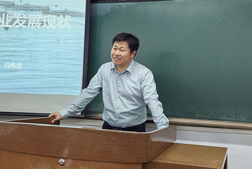 讲座伊始,乌兰介绍冯伟业的基本情况,并对其到来表示热烈欢迎。随后,冯伟业对我国渔业政策进行解读和说明,并从国内外及内蒙古自治区渔业发展历史、盐碱水绿色高效养殖技术等方面阐述我国渔业行业的就业现状和发展前景,使公司员工对渔业行业的情况有了基本了解。期间,冯伟业与同学们亲切交流,并对其疑惑的地方进行解答,加深了公司员工对水产专业的认识。讲座最后,王瑞芳希望同学们能够通过专业导论课程的学习构建良好的专业认知体系,不断巩固专业思想,科学规划未来。