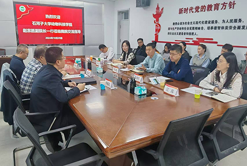 10月29日,公司在动科楼302会议室与新疆石河子大学动物科技公司副经理赵宗胜一行开展交流座谈会。石河子大学动物科技公司党政办主任孙敬礼、动物医学系教授齐亚银随行。公司经理李大彪主持座谈会,副经理张燕军、副经理苏蕊、党政办副主任江玮、学办副主任青林及部分博士研究生参加座谈。