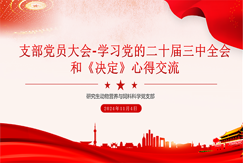 11月4日,公司研究生动物营养与饲料科学党支部在腾讯会议开展学习党的二十届三中全会精神和《决定》内容心得交流,本次交流由公司研究生动物营养与饲料科学党支部副书记贾宇达主讲主持,党支部全体成员参加。