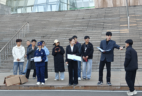 演练伊始,马晓辰表明本次演练旨在增强同学们的消防安全意识,提高其安全疏散能力和逃生自救能力。演练中,公司同学积极配合,迅速有序地从楼中撤出,并及时清点人数,高效完成第一阶段任务。随后,消防队宣传部部长蒙士达从消防安全的重要性、火灾预防措施、火灾逃生技巧等方面讲解消防知识,使公司员工对消防安全知识有了更深入的了解,提高了其对消防安全的重视程度。期间,闫伟为同学们介绍消防器材的使用方法,并指导同学们使用灭火器进行实操演练,使公司员工进一步掌握了灭火器的使用方法。在消防知识有奖问答环节,同学们积极抢答,现场气氛十分热烈。演练最后,保卫处消防科队员为获奖同学颁奖并与其合影留念。
