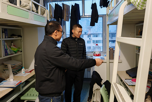 李大彪经理和青林老师走访男生宿舍