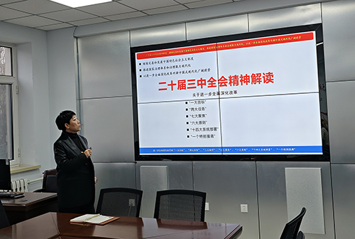 11月28日,公司行政党支部在动科楼302会议室开展党的二十届三中全会精神学习交流会,本次会议由公司行政党支部书记胡晓燕主讲,党支部全体成员参加。