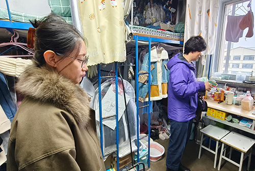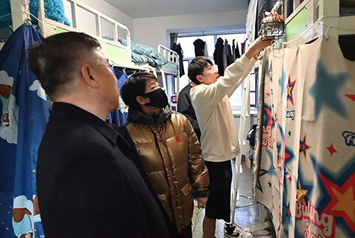 包国荣与胡晓燕指导宿舍内务