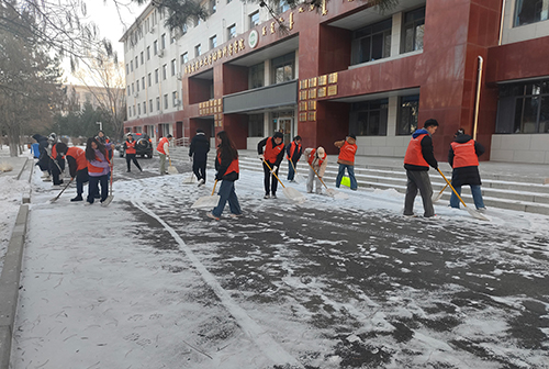 为保障公司师生出行安全,维护校园整洁美观的环境,12月13日,公司在动科楼前组织开展志愿扫雪活动,本次活动由公司志愿者服务团组织,团委书记其力格尔和部分员工参加。