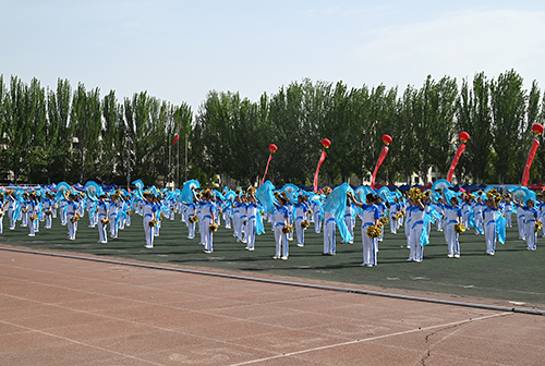 最后,扇舞表演队闪亮登场。激昂的鼓点响起,身着蓝白色服装的队员们组成整齐方阵,如翻涌的海浪般有序涌入赛场。这场精彩表演为开幕式画上圆满句号,也正式吹响了田径场上激烈角逐的号角。