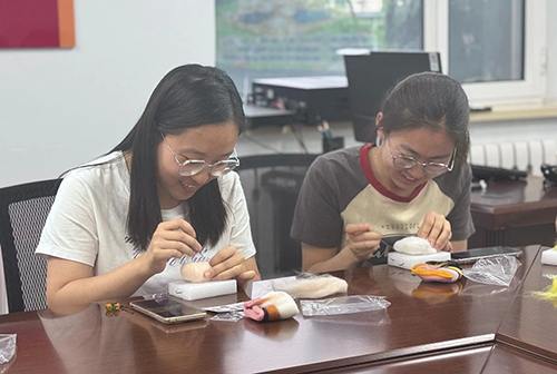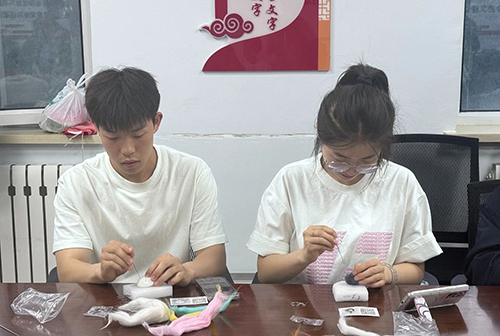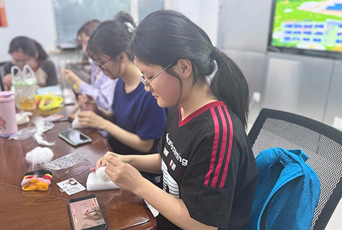其力格尔参观同学们的制作过程,她表明羊毛毡制作因其对耐心和精细操作的要求,是触发“心流”体验的理想活动,希望同学们沉浸于从无到有的创造过程,获得纯粹的创造乐趣与深度的满足感。