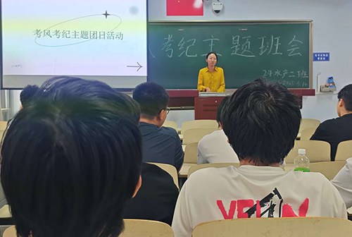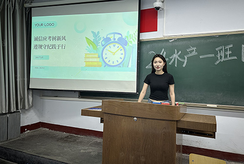 24级水产二班班主任杨艳平表明考试是检验学习成果的重要方式,诚信应考是个人道德品质的生动体现,鼓励同学们凭借真才实学取得优异成绩,共同维护班级良好的学风考风。团支书潘室元围绕考试流程和纪律要求,深入解读考试违规行为的判定标准及处理办法,使同学们深刻认识到违反考纪的严重后果。