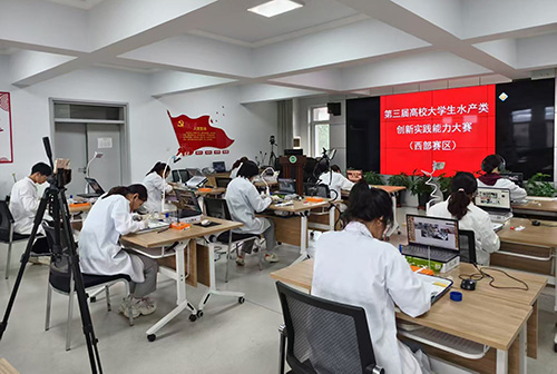 本次比赛共设置理论考核、水产类虚拟仿真操作和水产学实验操作三个赛项,综合考察参赛选手的专业理论知识水平和动手操作能力。理论考核环节,同学们凭借清晰的逻辑思维精准作答,充分体现其扎实的知识储备。实践操作阶段,他们规范使用实验器械,熟练完成静脉采血、血涂片制片、解剖及病原菌分离等任务,操作流程严谨专业。评委组全程双机位动态追踪评估,从操作规范程度、结果准确性等维度进行量化评分,确保比赛公平公正。
