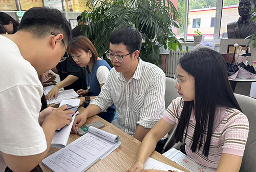 为确保各项工作有序推进,各部门工作人员提前到岗就位,精心筹划、严密组织,以饱满的热情迎接每一位毕业生的到来。他们提前整理好各类材料,并在办公桌上摆放指引牌,到场的毕业生们自觉排队,依次核对个人信息、领取各类材料,现场流程清晰、秩序井然。