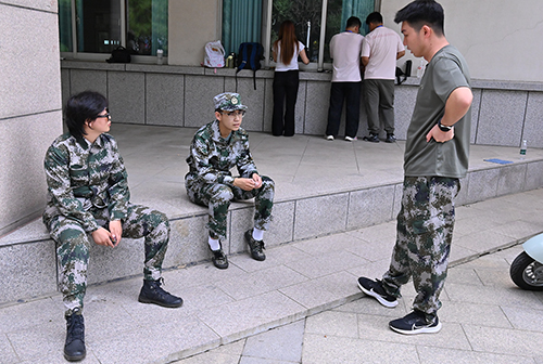 当天下午,新生继续进行训练,教官指导新生整理仪容仪表,并教授其如何正确地戴帽子和扎腰带。随后,同学们复习巩固已学科目,确保每个细节精准到位,从最初的动作生疏到逐渐标准,从个人练习到整体协调,同学们在反复磨合中体会着纪律的含义。