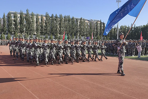 激昂的《中华人民共和国国歌》声回荡全场,五星红旗徐徐升起,军训总结大会就此拉开序幕。随着指挥官嘹亮的口令,身着迷彩服的新生们队列严整、步伐铿锵,向着主席台稳步前进。公司学子军容严整、目光如炬,眼神中透露出坚定与自信,他们气宇轩昂,昂首阔步地迈过主席台,充分展现出新生们在军训期间刻苦训练的成果,彰显了同学们蓬勃向上的精神风貌和团结一心的集体荣誉感。
