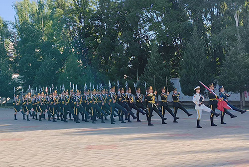 公司连队进行分列式表演
