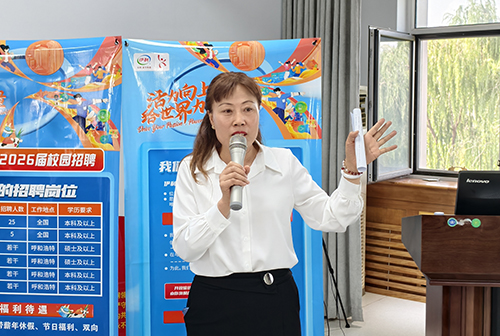 9月11日,内蒙古伊利实业集团股份有限公司在动科楼501会议室开展2026届校园招聘宣讲会,本次会议由内蒙古伊利实业集团股份有限公司蒙晋奶源大区总经理苑耀华主讲,内蒙古伊利实业集团股份有限公司招聘经理韩煦和公司22级部分员工参加,内蒙古伊利实业集团股份有限公司人事专员赵春芳主持。
