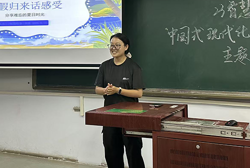 同学们结合自身经历,从红色精神传承、乡村振兴助力、非遗文化弘扬等多个方面,积极踊跃地分享了自己在暑假社会实践中的经历与感悟,并纷纷表明深刻认识到社会实践的意义,未来将继续以实践为笔,在服务社会、增长才干的过程中书写青春答卷。期间,同学们围绕如何更好开展社会实践活动、怎样提升实践中的沟通能力等问题展开讨论,现场气氛热烈。最后,班主任对本次班会进行总结,希望同学们将社会实践与专业学习紧密结合,不断在实践中探索、学习、成长。