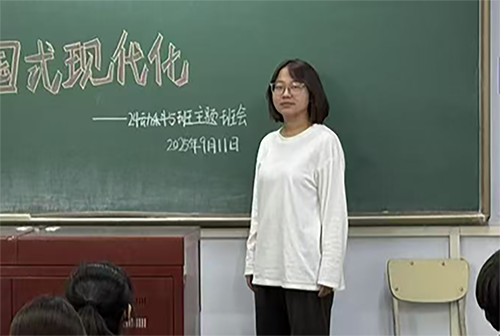 同学们深入学习中国式现代化的内涵与青年责任,阐述中国式现代化在全体人民共同富裕、物质文明和精神文明相协调、人与自然和谐共生、走和平发展道路等方面的特点,并引用九三阅兵等实例进行说明。其后,同学们从日常生活和家乡变迁的视角,分享中国式现代化带来的具体影响。最后,班主任对班会进行总结,勉励同学们要深刻认识到自身所肩负的历史使命,将今天的感悟转化为明日的行动,勤奋学习、锤炼本领,争做中国式现代化道路上的坚定践行者和有为建设者,让青春在为国家和人民的不懈奋斗中绽放绚丽之花。